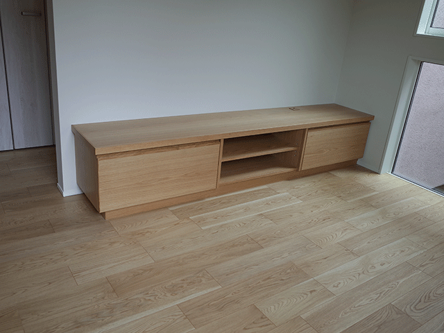 収納棚:ウォルナット、オーク化粧合板・ウレタンクリヤー仕上げ